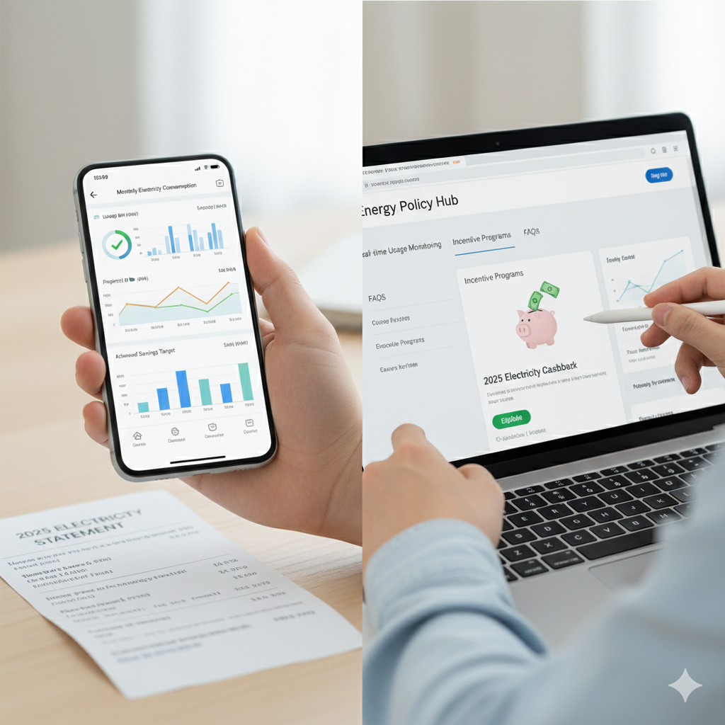 셋째, 에너지캐시백·인센티브입니다. 앞의 두 가지는 요금 자체를 줄여 주는 “절감”이라면, 에너지캐시백은 실제로 돈을 돌려받는 “환급”에 가깝습니다. 한국전력에 사전 등록한 뒤 전년 동월보다 사용량을 일정 비율 이상 줄이면, 절감한 kWh만큼 정해진 단가를 곱해 현금이나 포인트로 돌려받습니다. 2025 전기요금 환급 계산에서 “캐시백”이라고 부르는 부분이 바로 여기에서 나옵니다.